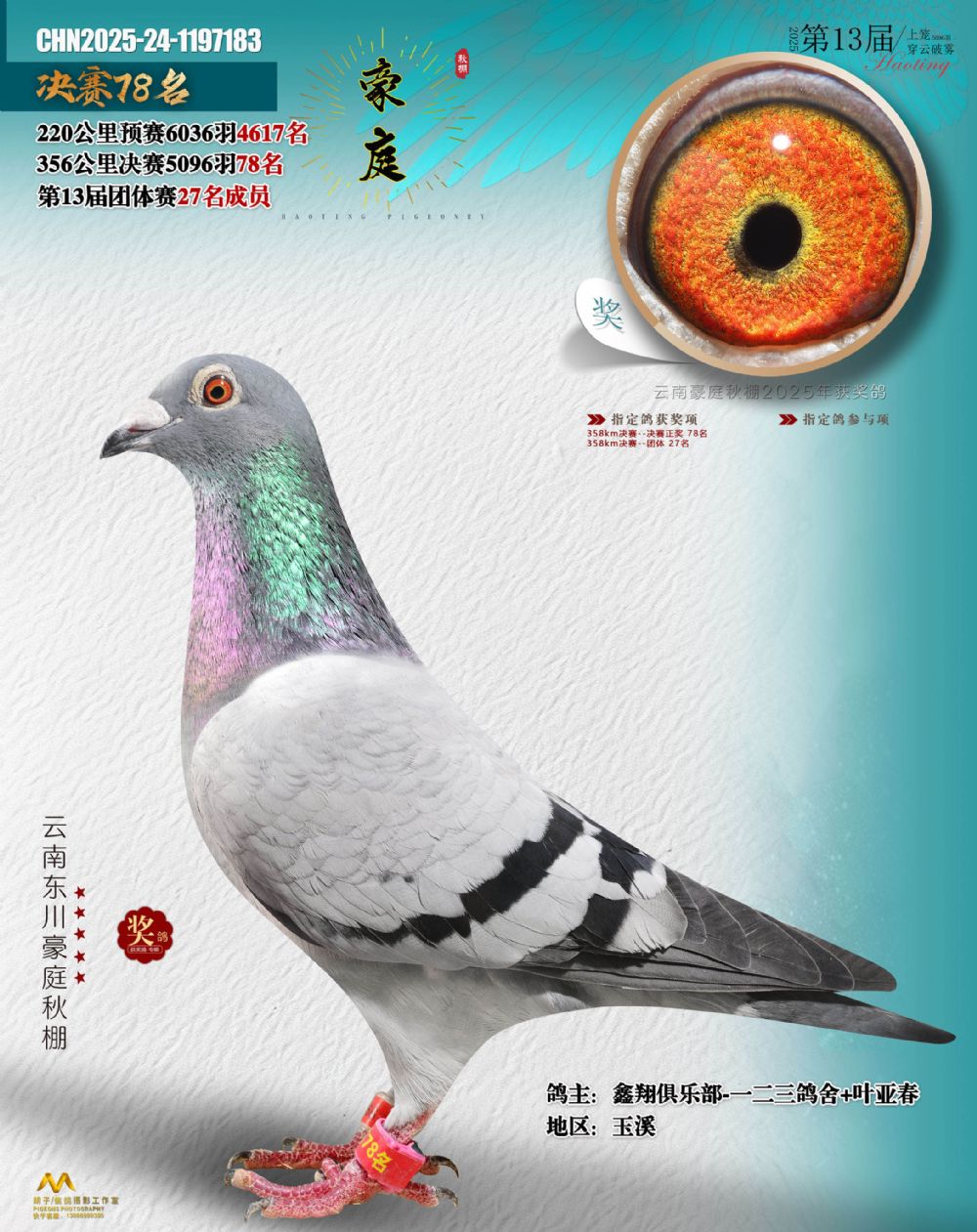 • 鸽主姓名:鑫翔俱乐部-一二三鸽舍+叶亚春