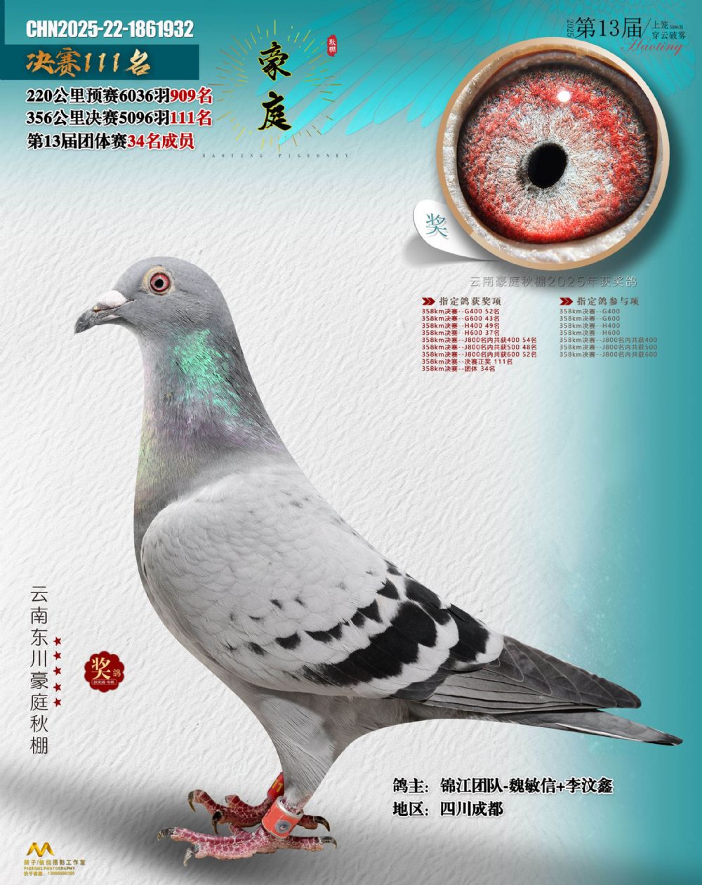 • 鸽主姓名:锦江团队-魏敏信+李汶鑫