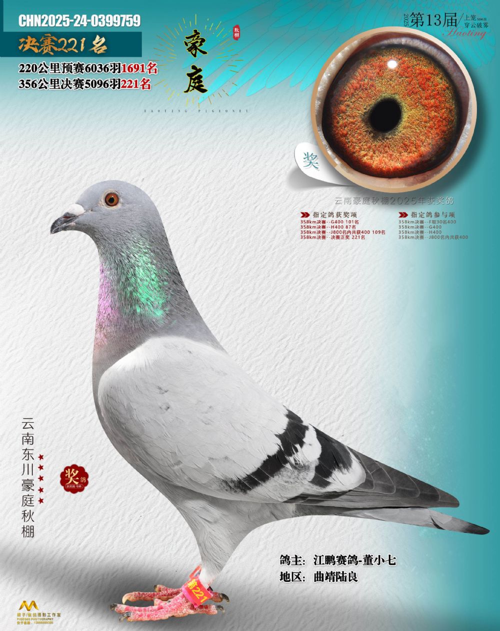 • 鸽主姓名:江鹏赛鸽-董小七
