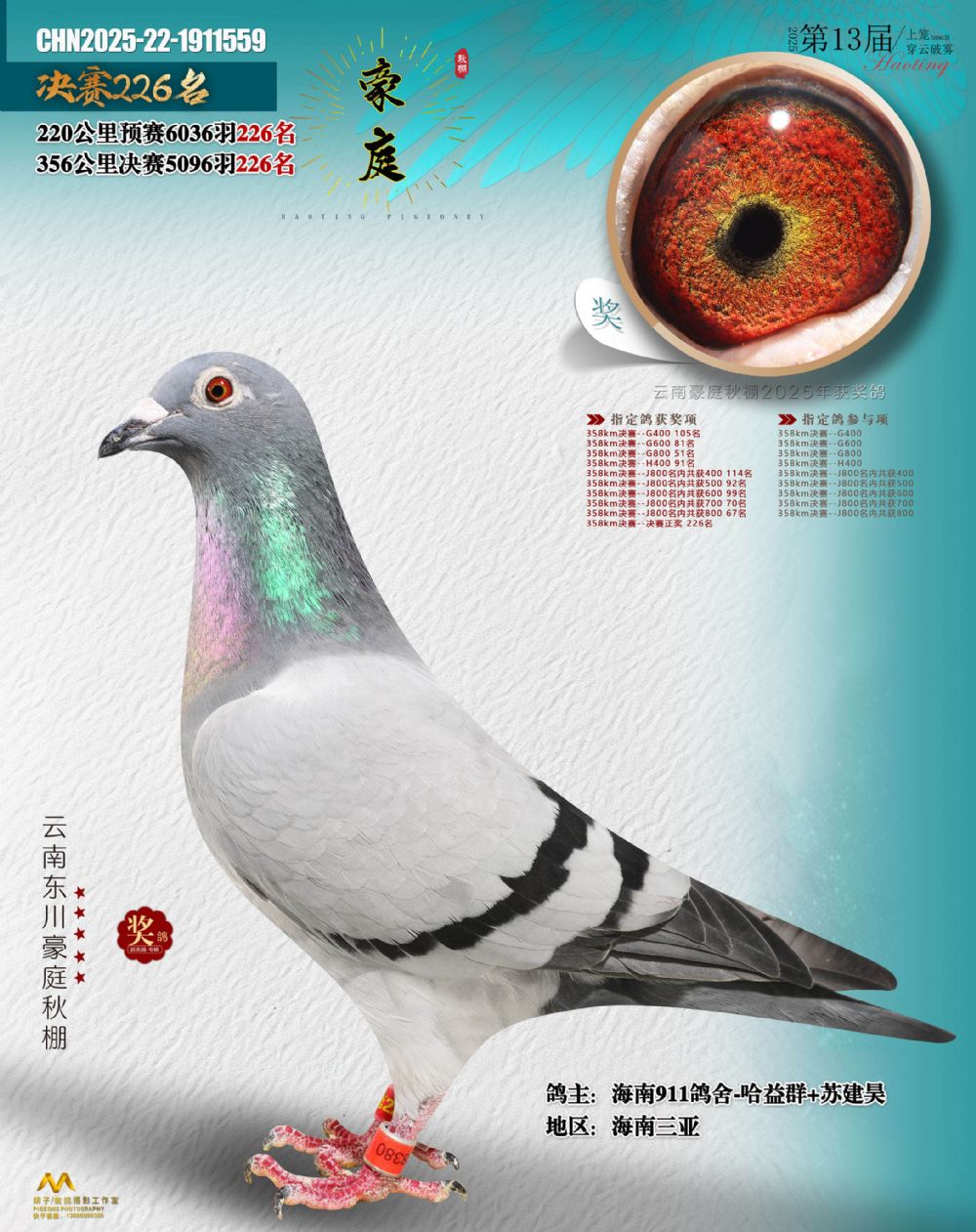 • 鸽主姓名:海南911鸽舍-哈益群+苏建昊