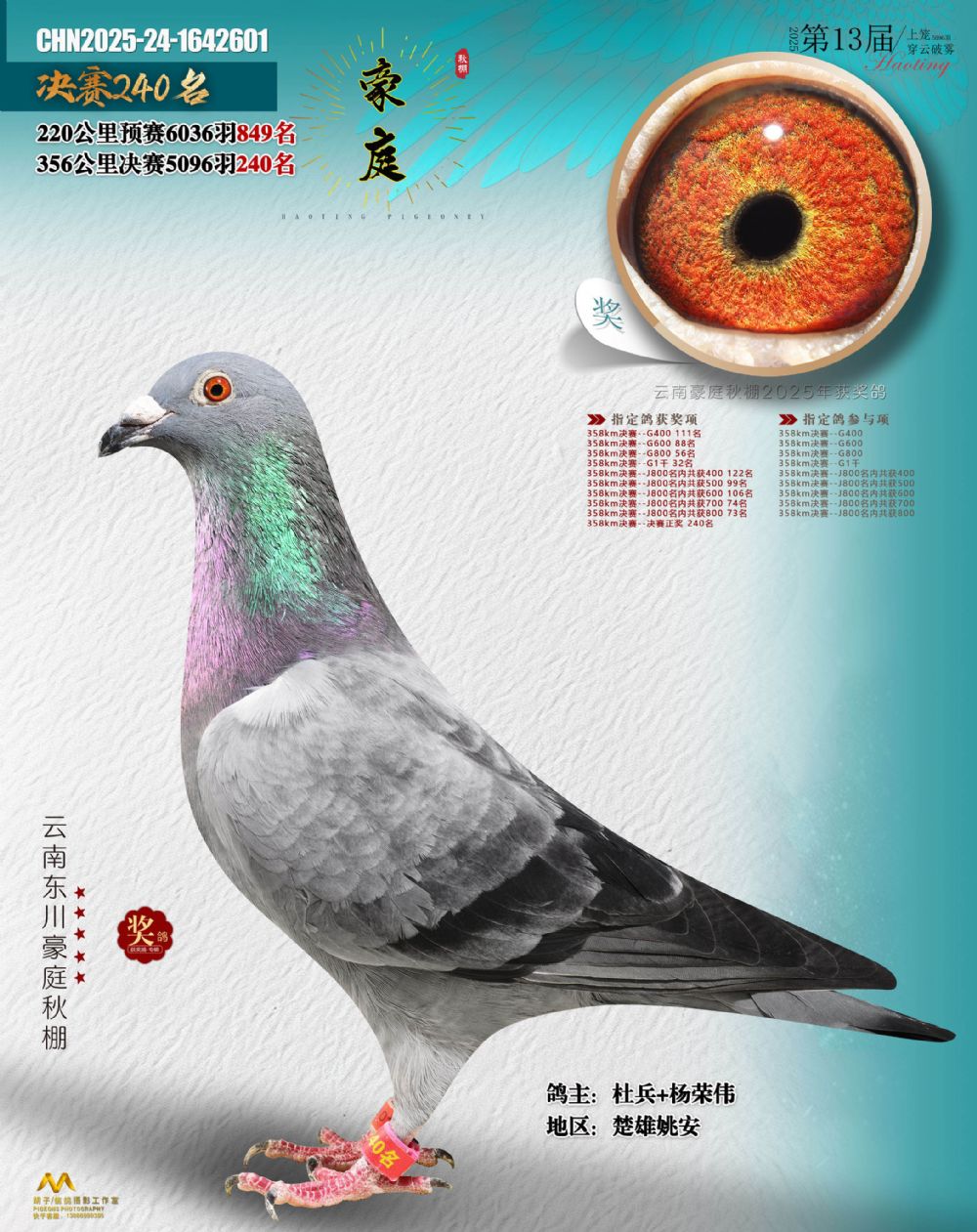 • 鸽主姓名:杜兵+杨荣伟