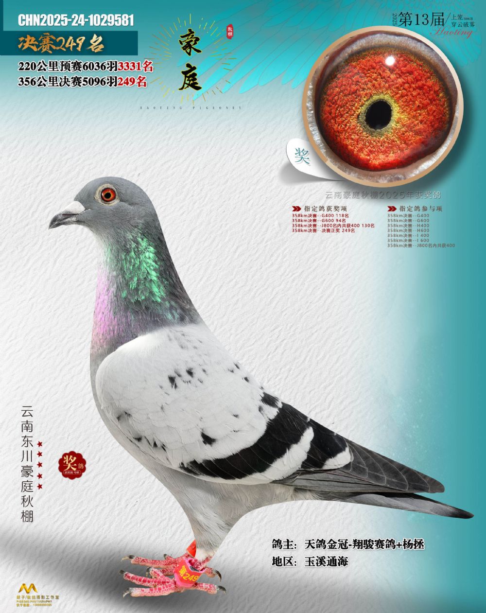 • 鸽主姓名:天鸽金冠-翔骏赛鸽+杨拯