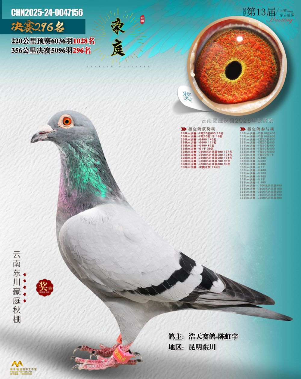 • 鸽主姓名:浩天赛鸽-陈虹宇