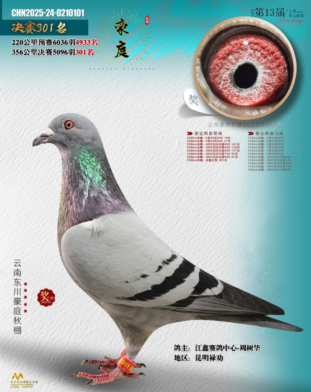 • 鸽主姓名:江鑫赛鸽中心-周树华