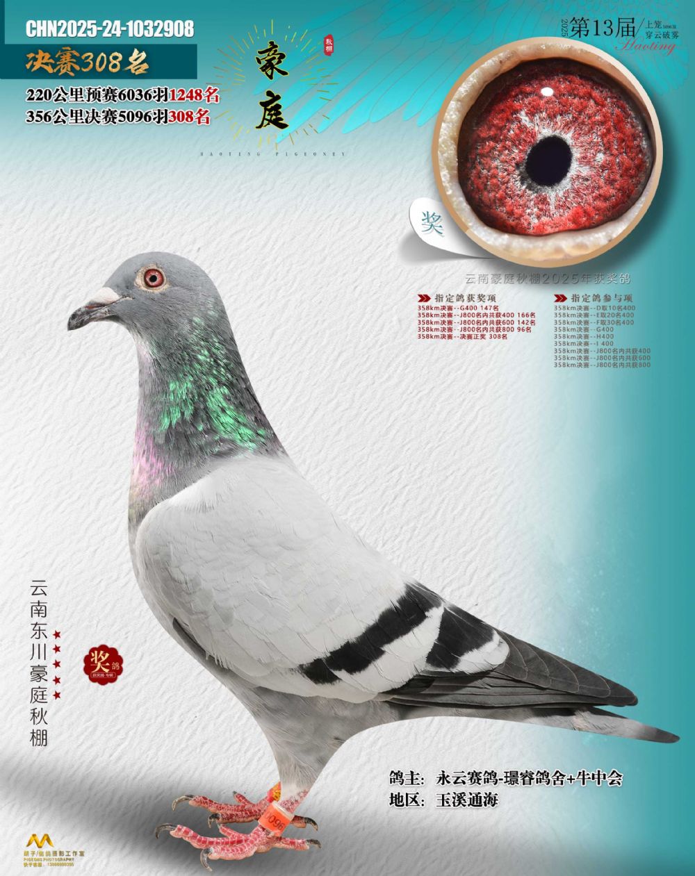 • 鸽主姓名:永云赛鸽-璟睿鸽舍+牛中会