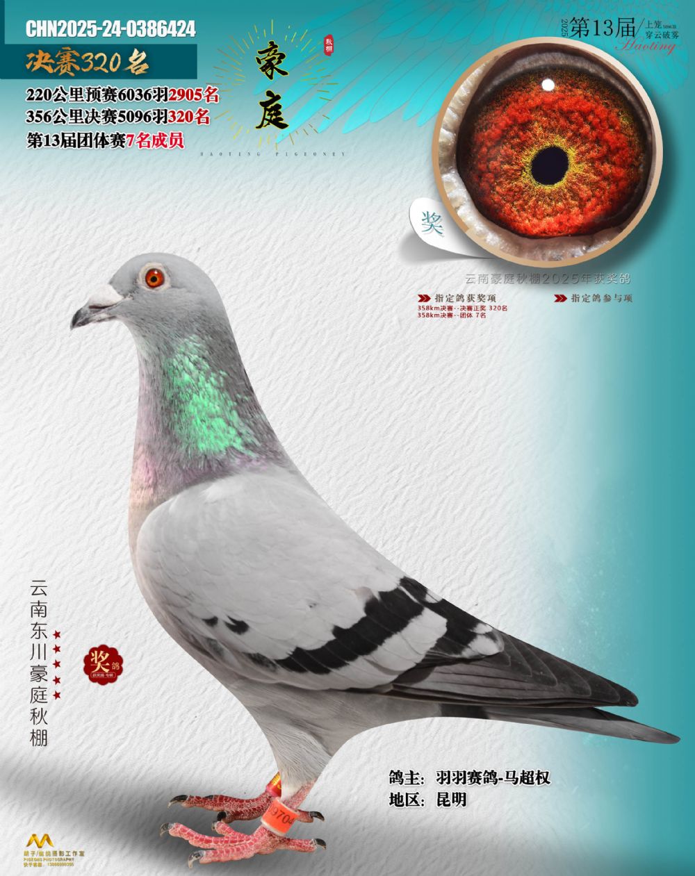 • 鸽主姓名:羽羽赛鸽-马超权