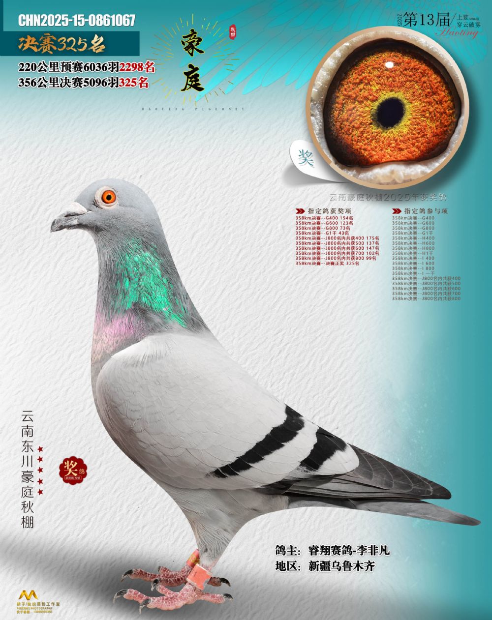 • 鸽主姓名:睿翔赛鸽-李非凡