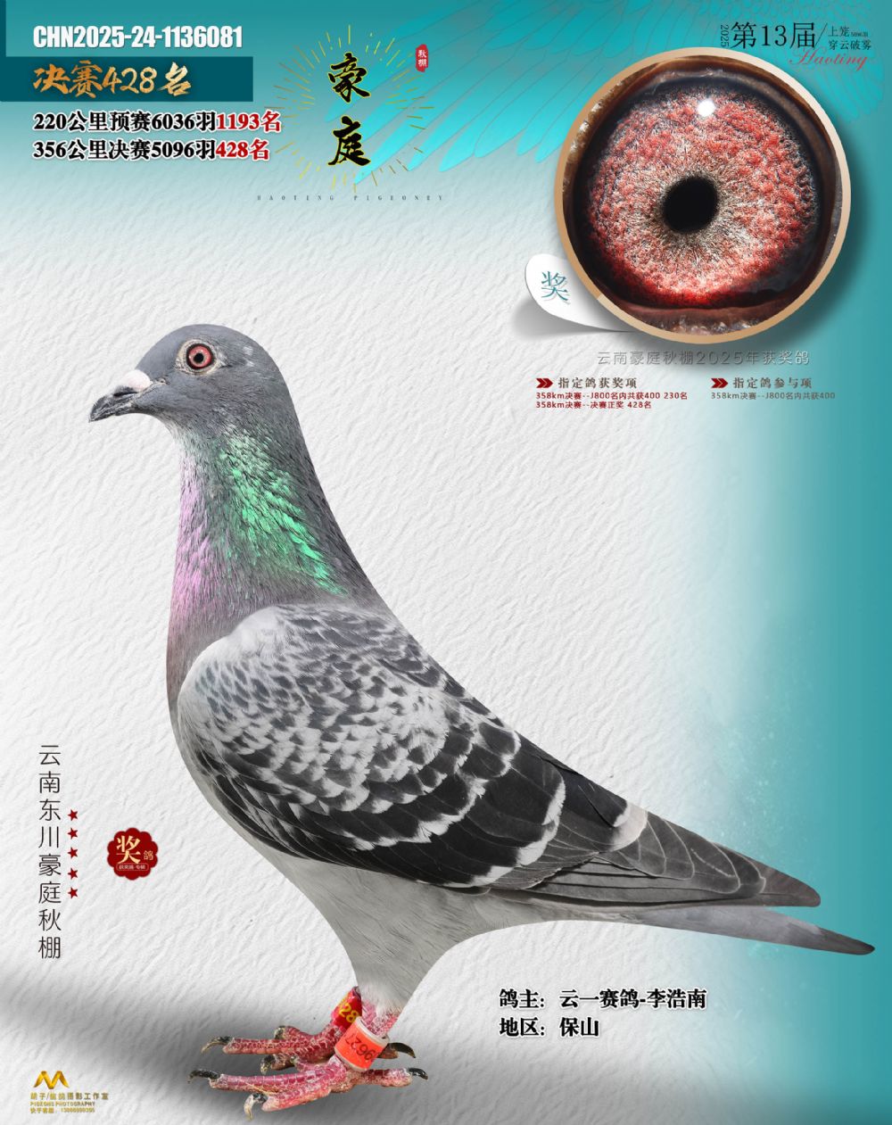 • 鸽主姓名:云一赛鸽-李浩南