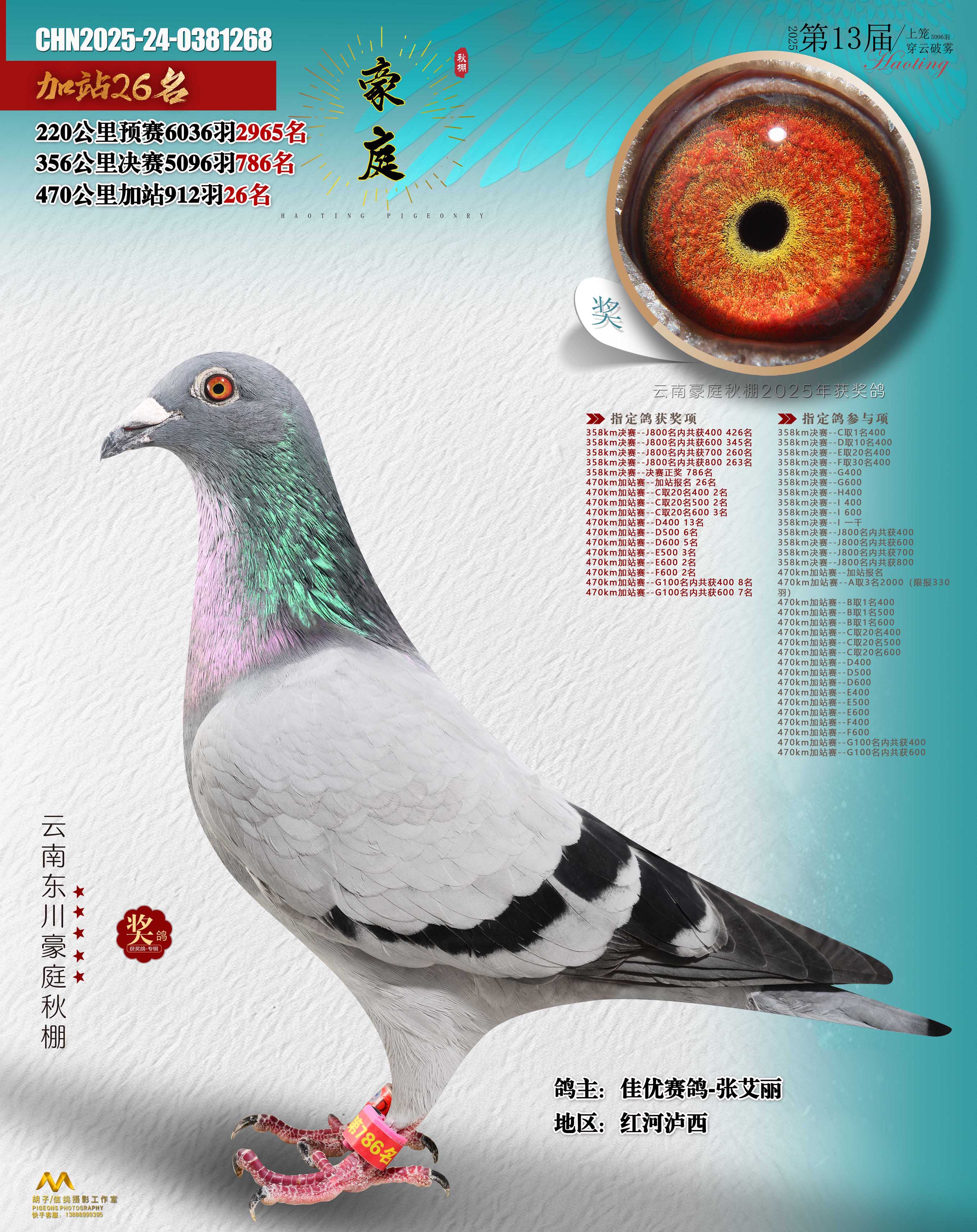 • 鸽主姓名:佳优赛鸽-张艾丽