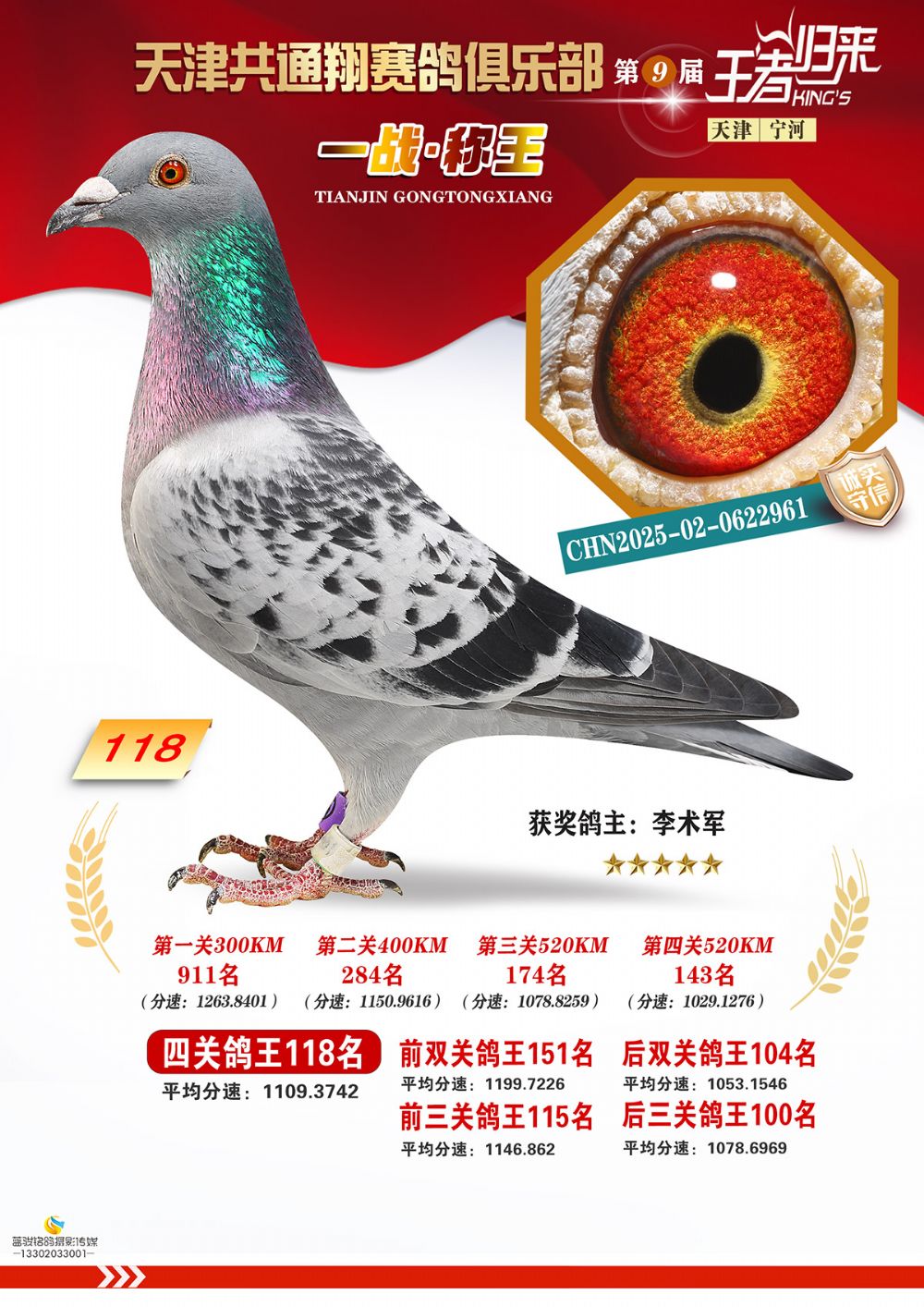 1612151 共通翔四关鸽王117名 ¥500元 2次