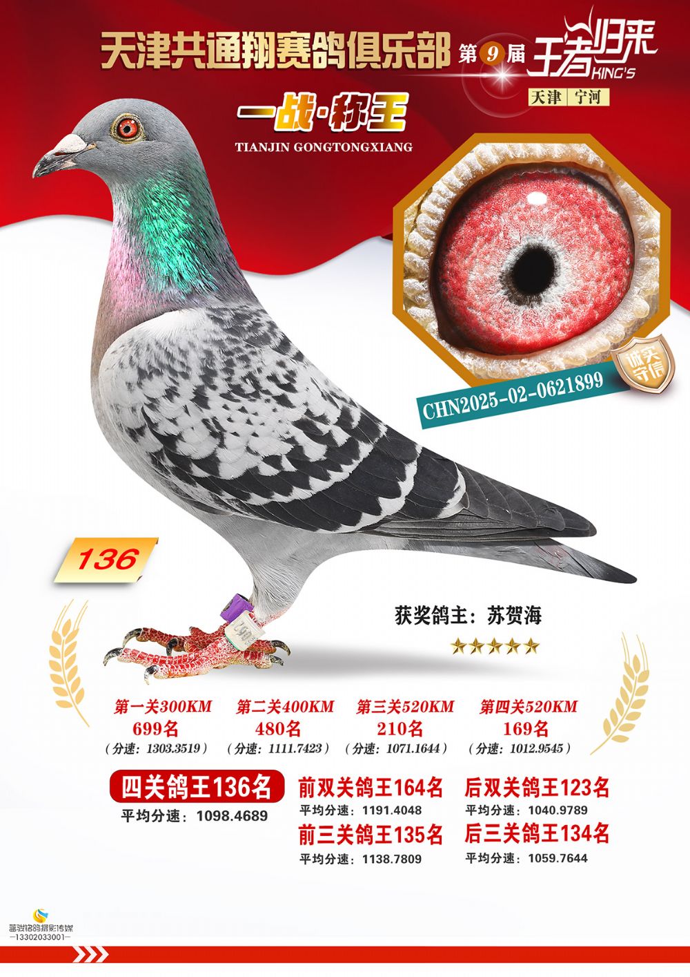 1612169 共通翔四关鸽王135名 ¥300元 0次
