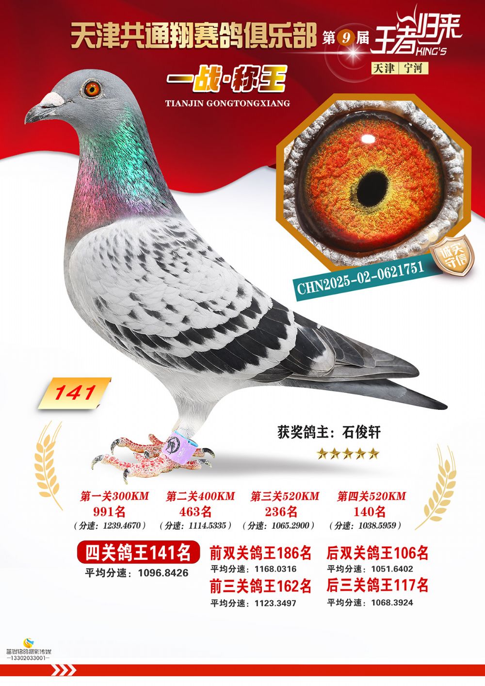 1612174 共通翔四关鸽王140名 ¥300元 1次