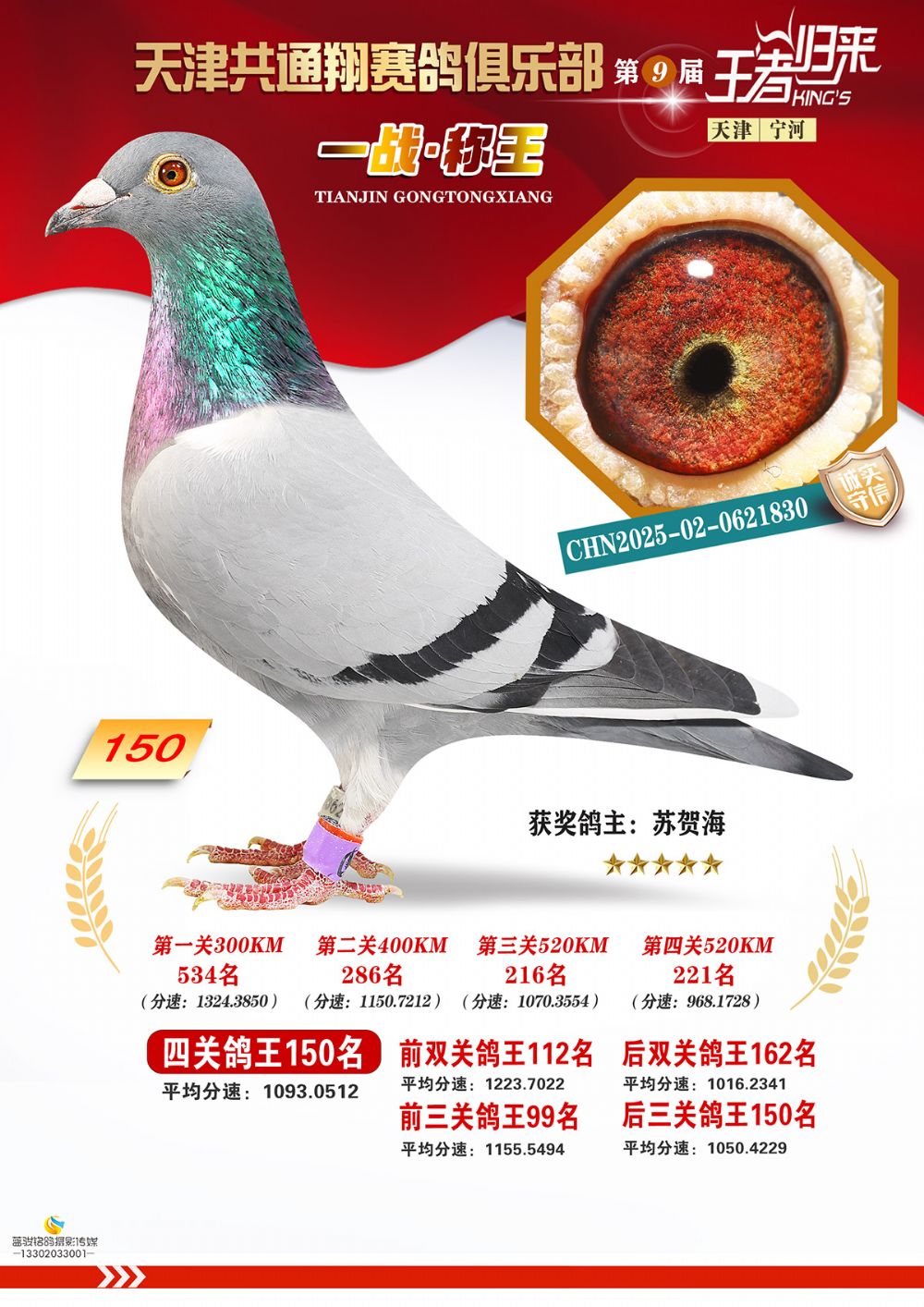 1612186 共通翔四关鸽王152名 ¥500元 2次