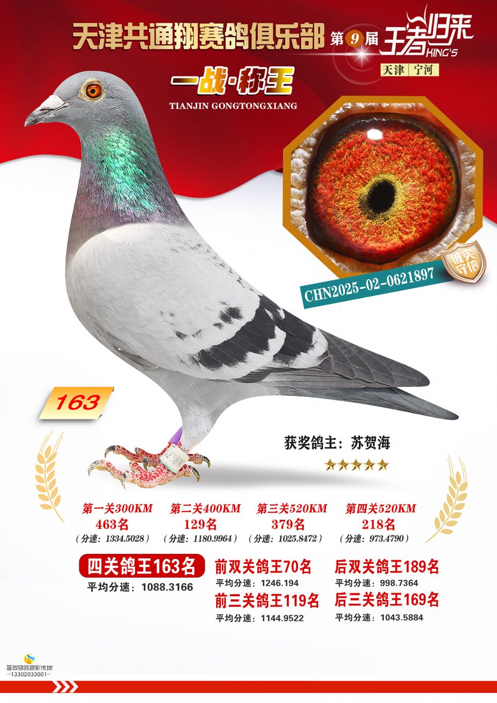1612198 共通翔四关鸽王164名 ¥300元 1次