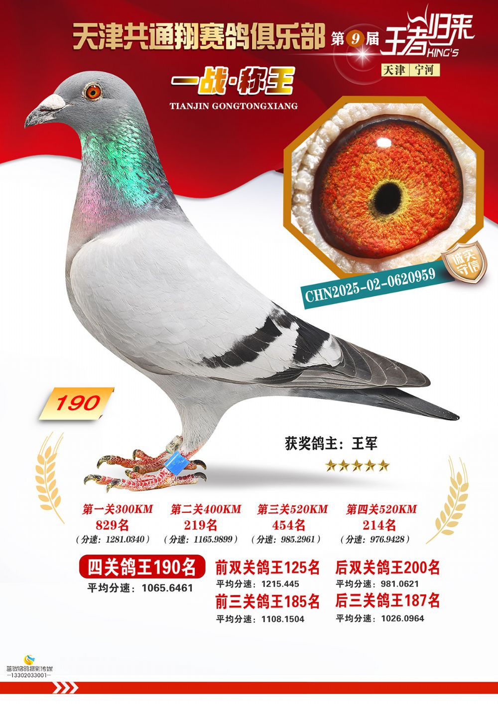 1612229 共通翔四关鸽王195名 ¥300元 1次