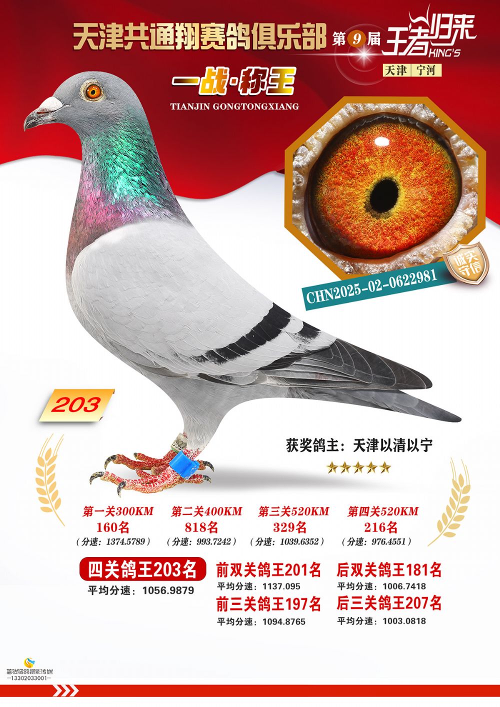 1612241 共通翔四关鸽王207名 ¥300元 1次