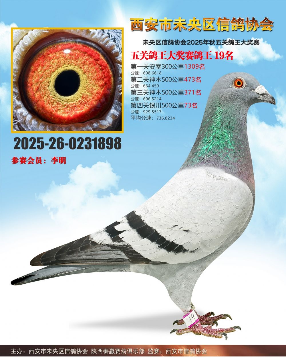 1612813 未央鸽协五关鸽王21名 ¥800元 0次
