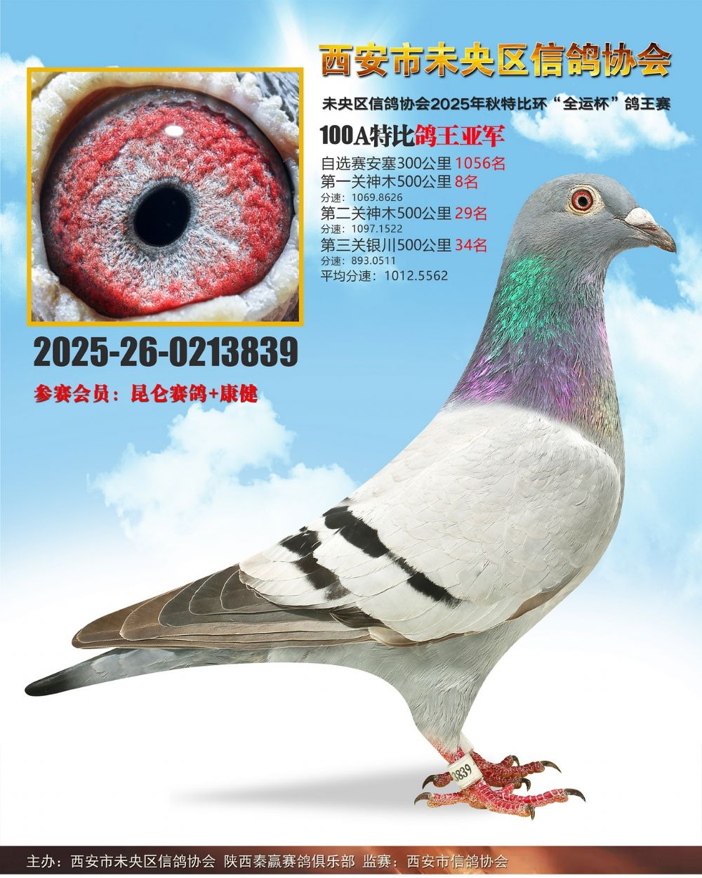 未央鸽协100A特比鸽王亚军