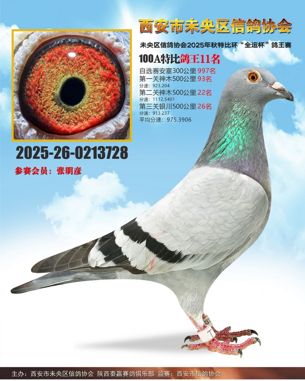 1612829 未央鸽协100A特比鸽王15名 ¥800元 0次