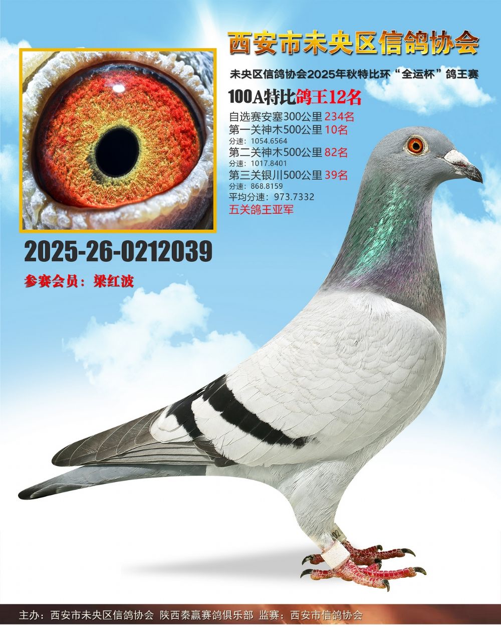 1612832 未央鸽协100A特比鸽王18名 ¥1200元 3次