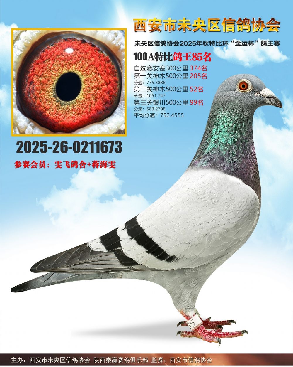 1612897 未央鸽协100A特比鸽王93名 ¥500元 0次