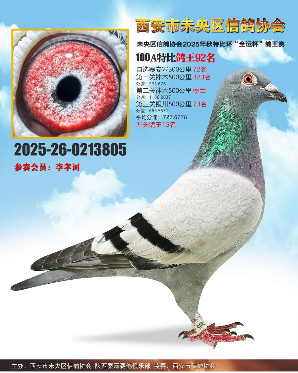 1612901 未央鸽协100A特比鸽王97名 ¥500元 0次