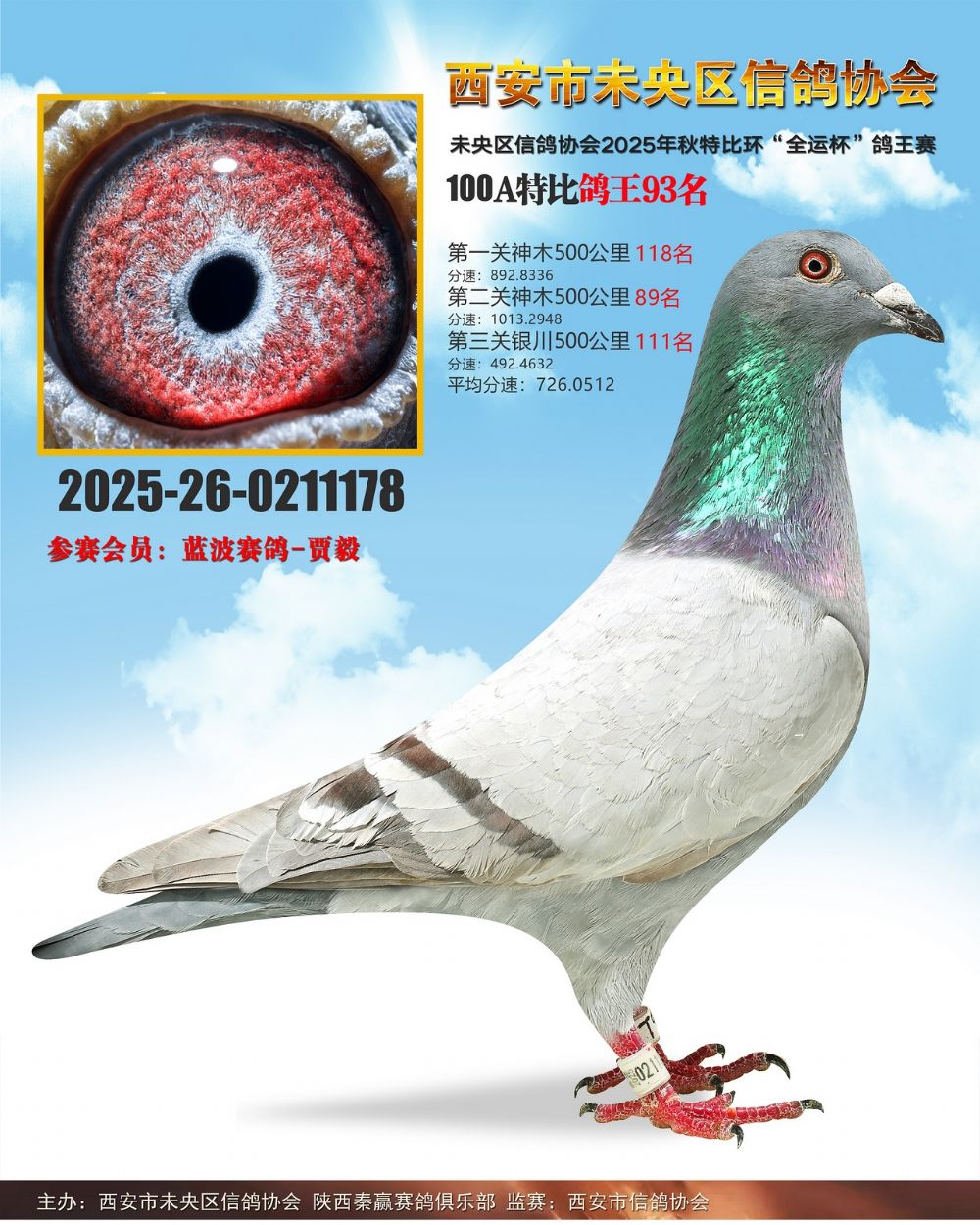 1612898 未央鸽协100A特比鸽王94名 ¥500元 0次