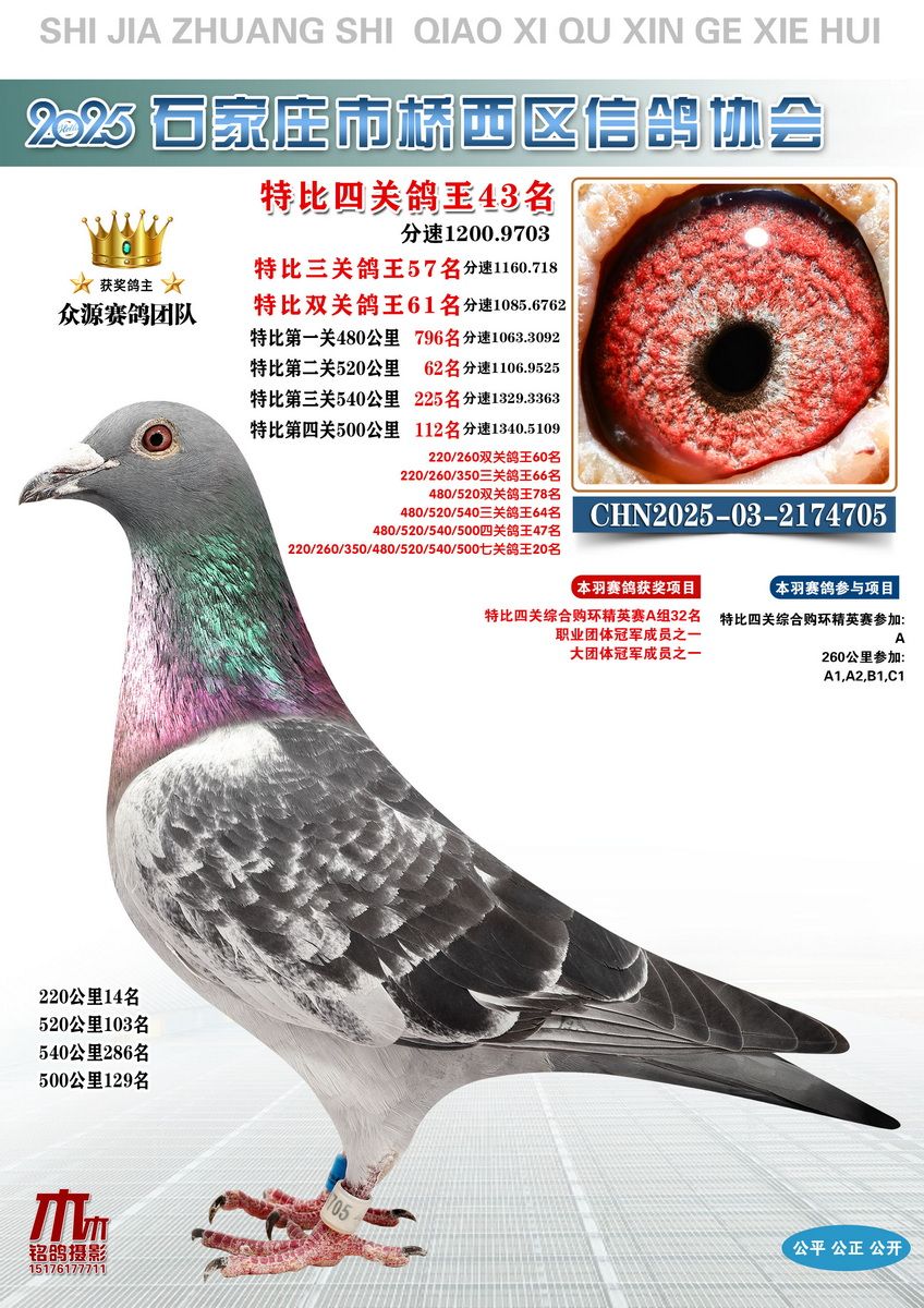 1614137 特比四关鸽王75名 ¥500元 0次