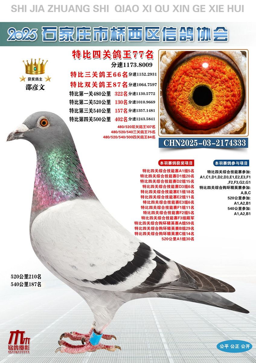 1614065 特比四关鸽王季军(七关鸽王6名) ¥2000元 0次