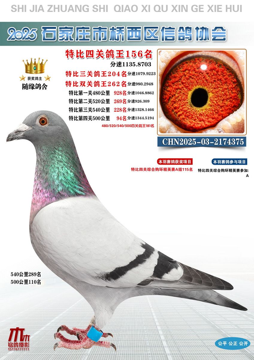 - 当前查看的拍卖鸽:特比四关鸽王156名