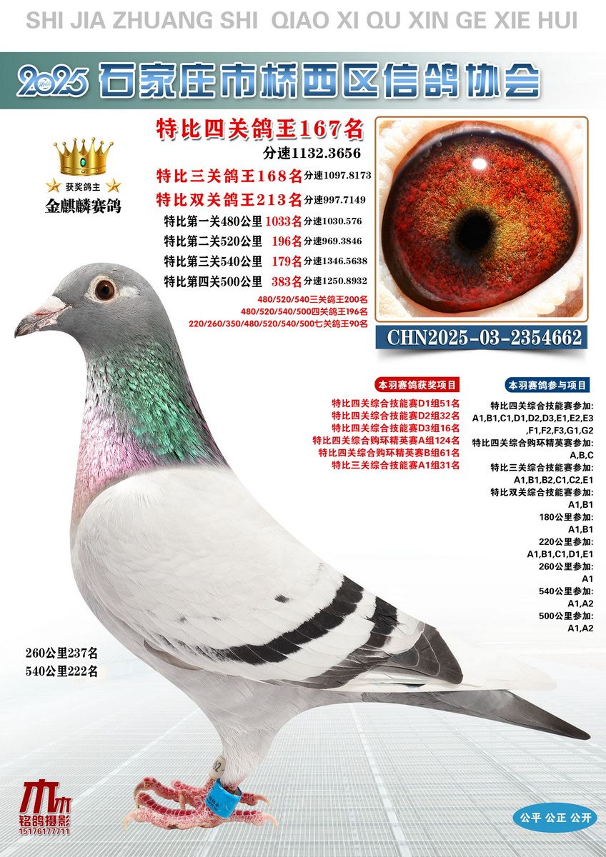 - 当前查看的拍卖鸽:特比四关鸽王167名