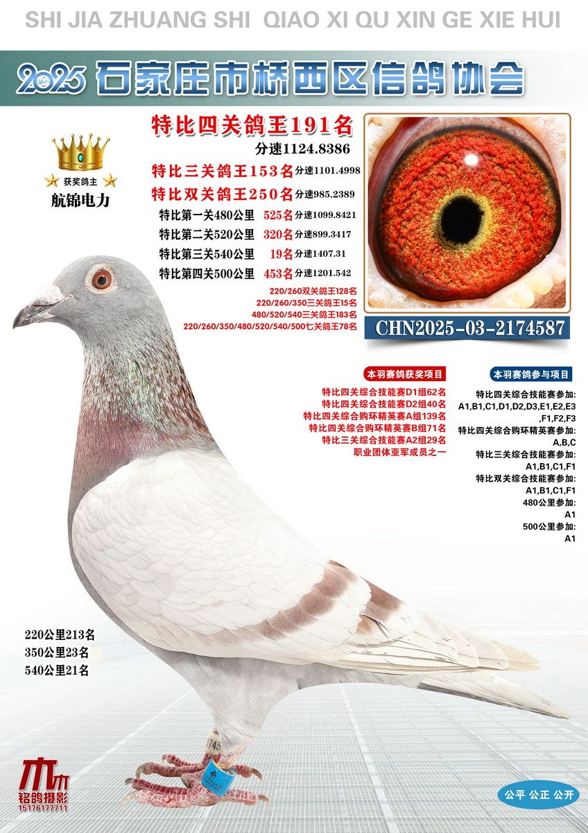 - 当前查看的拍卖鸽:特比四关鸽王191名