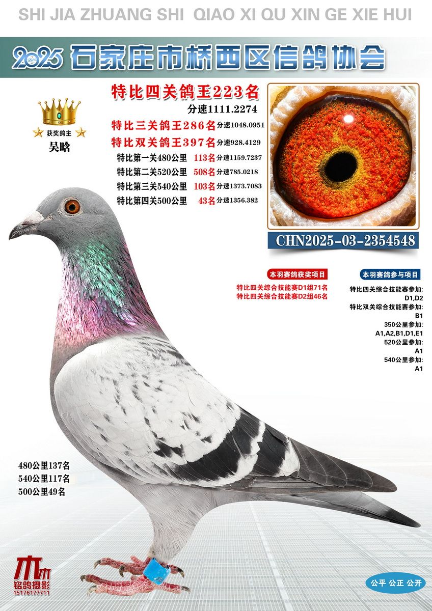 - 当前查看的拍卖鸽:特比四关鸽王223名