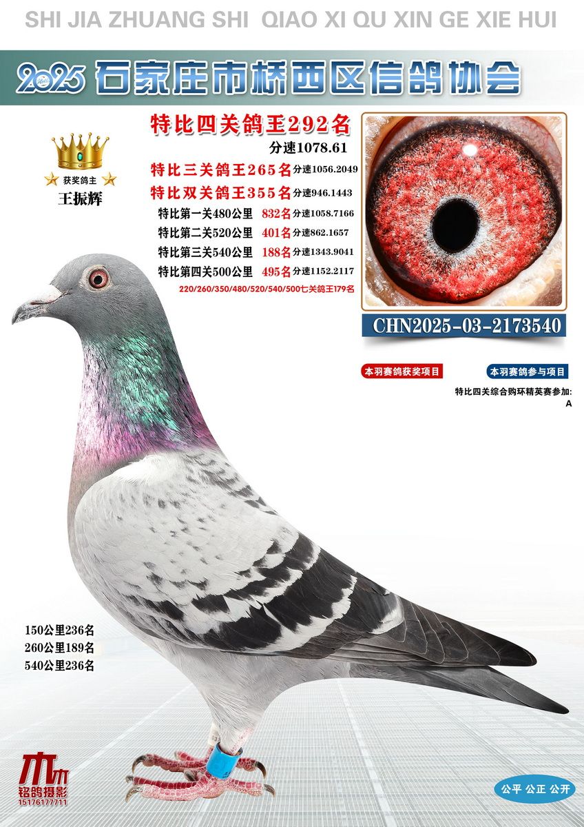 - 当前查看的拍卖鸽:特比四关鸽王292名
