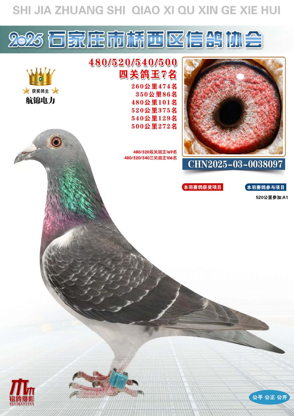 1614415 中距离四关鸽王季军(七关鸽王9名) ¥600元 0次
