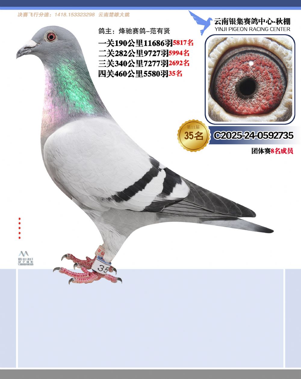 • 鸽主姓名:烽驰赛鸽-范有贤