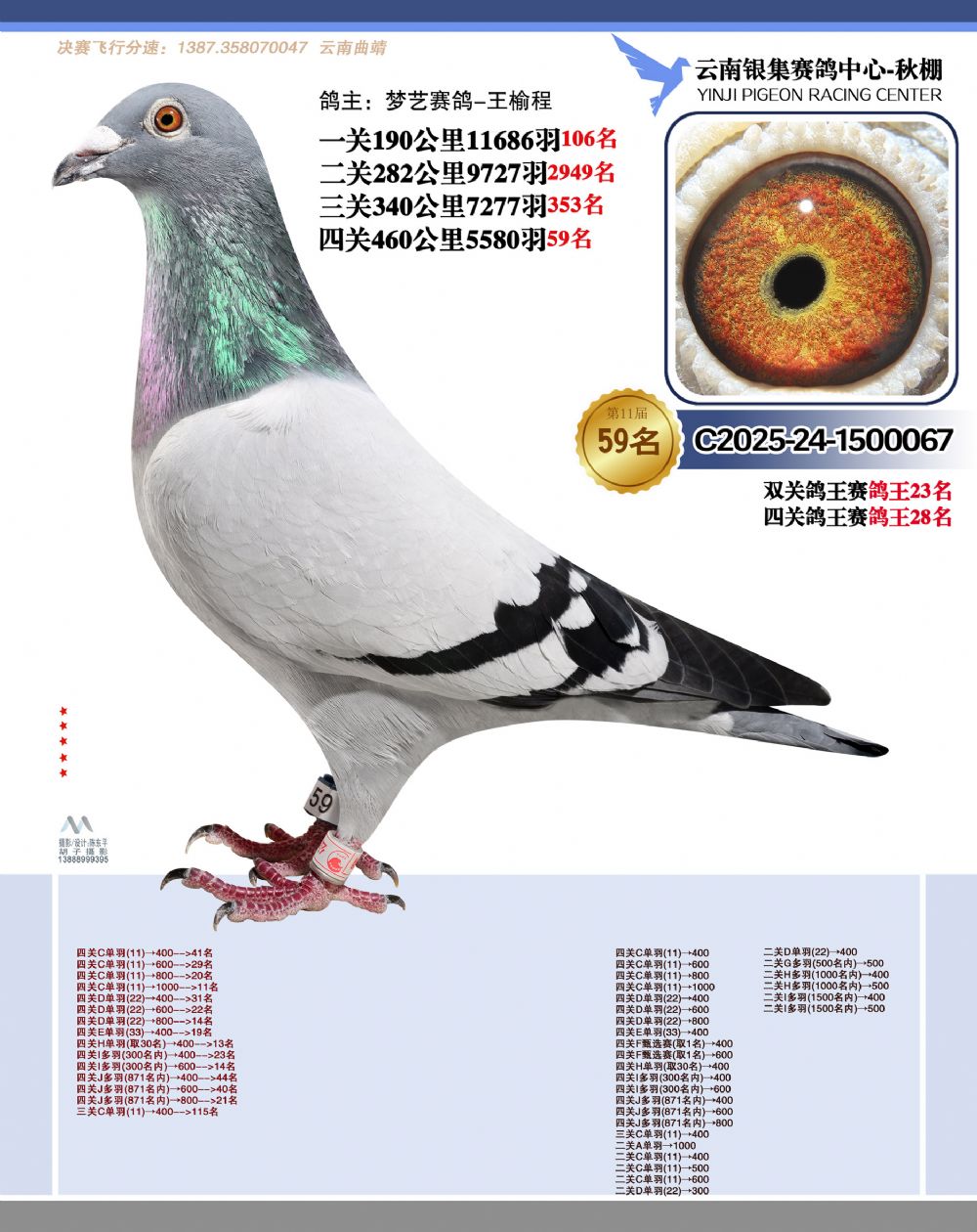 • 鸽主姓名:梦艺赛鸽-王榆程