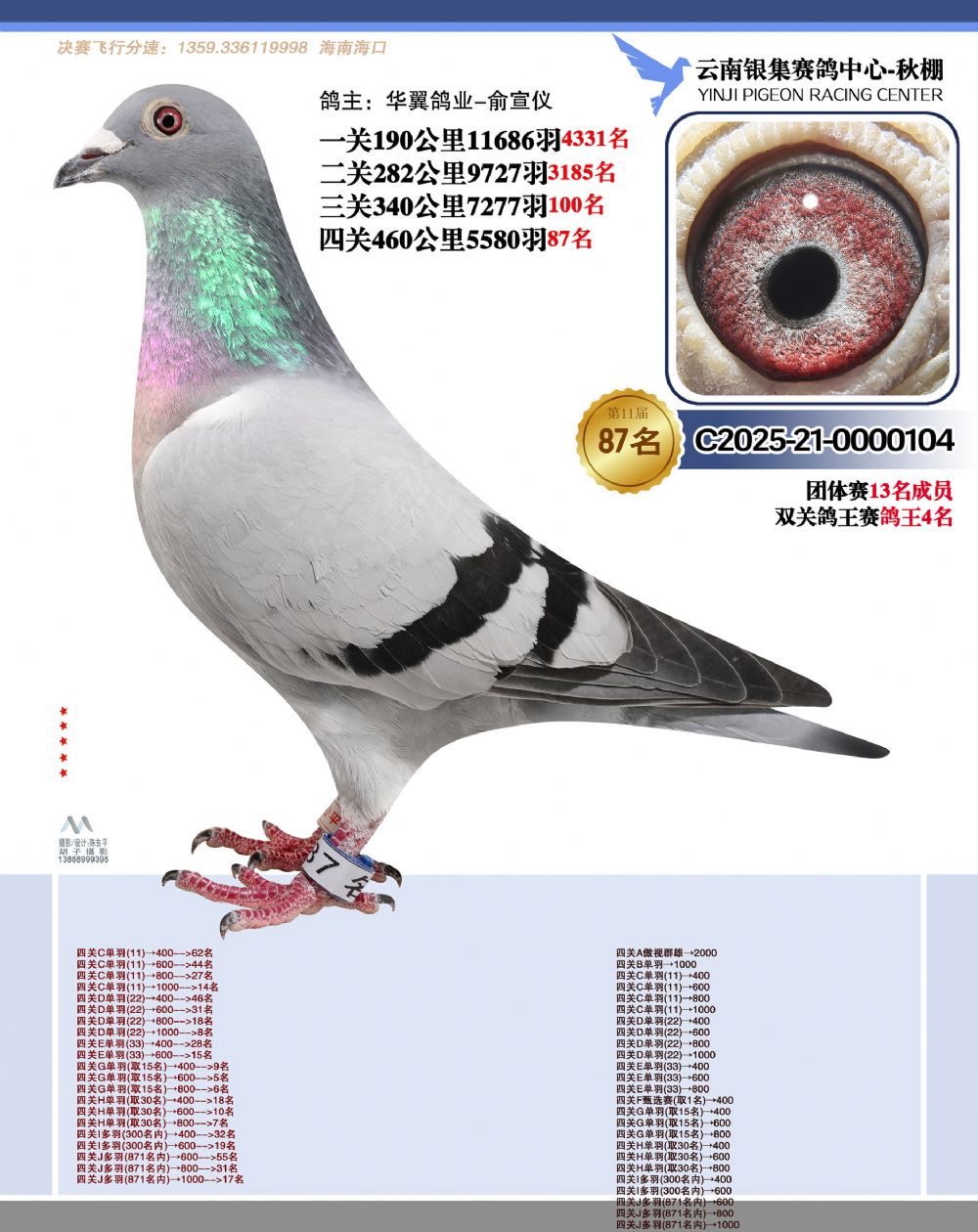 • 鸽主姓名:华翼鸽业-俞宣仪