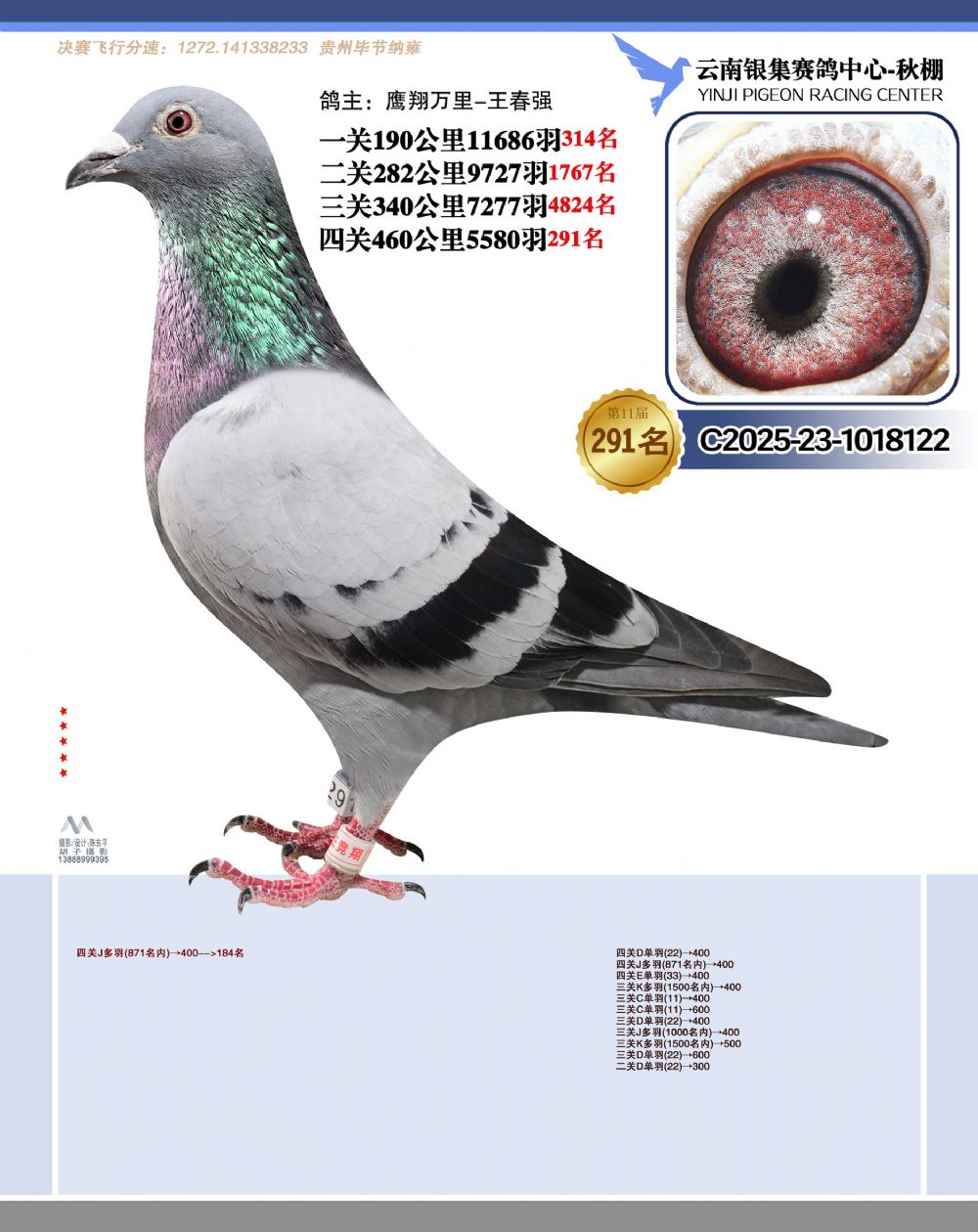 • 鸽主姓名:鹰翔万里-王春强