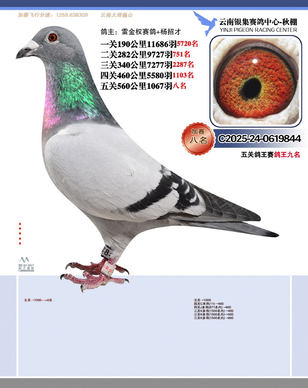 • 鸽主姓名:雷金权赛鸽+杨招才