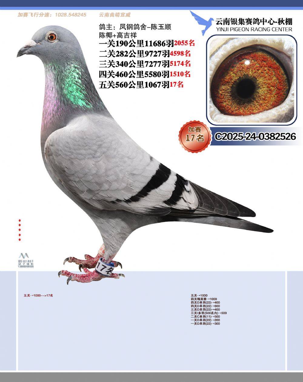 • 鸽主姓名:凤钢鸽舍-陈玉顺+陈椰+高吉祥