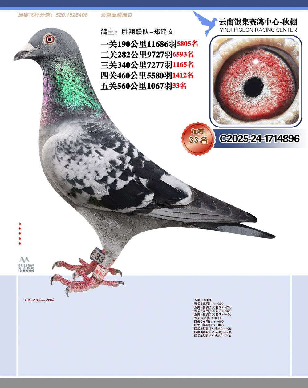 • 鸽主姓名:胜翔联队-郑建文