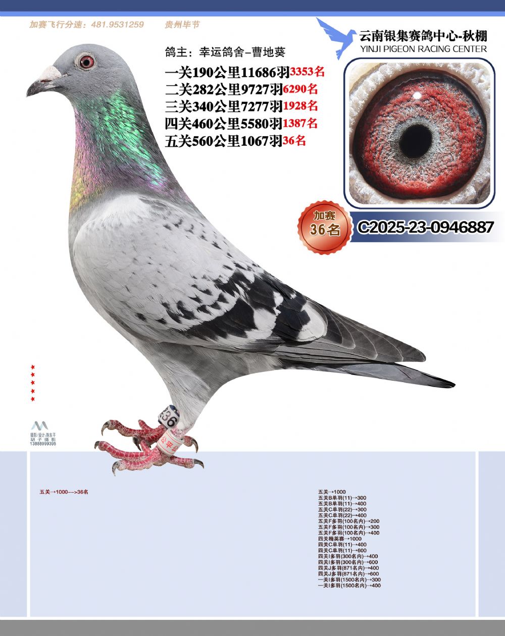 • 鸽主姓名:幸运鸽舍-曹地葵