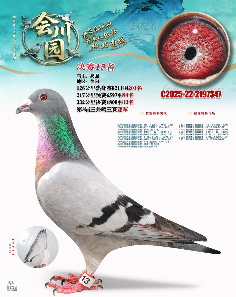 1657869 会川园决赛15名(鸽王季军) ¥30000元 9次