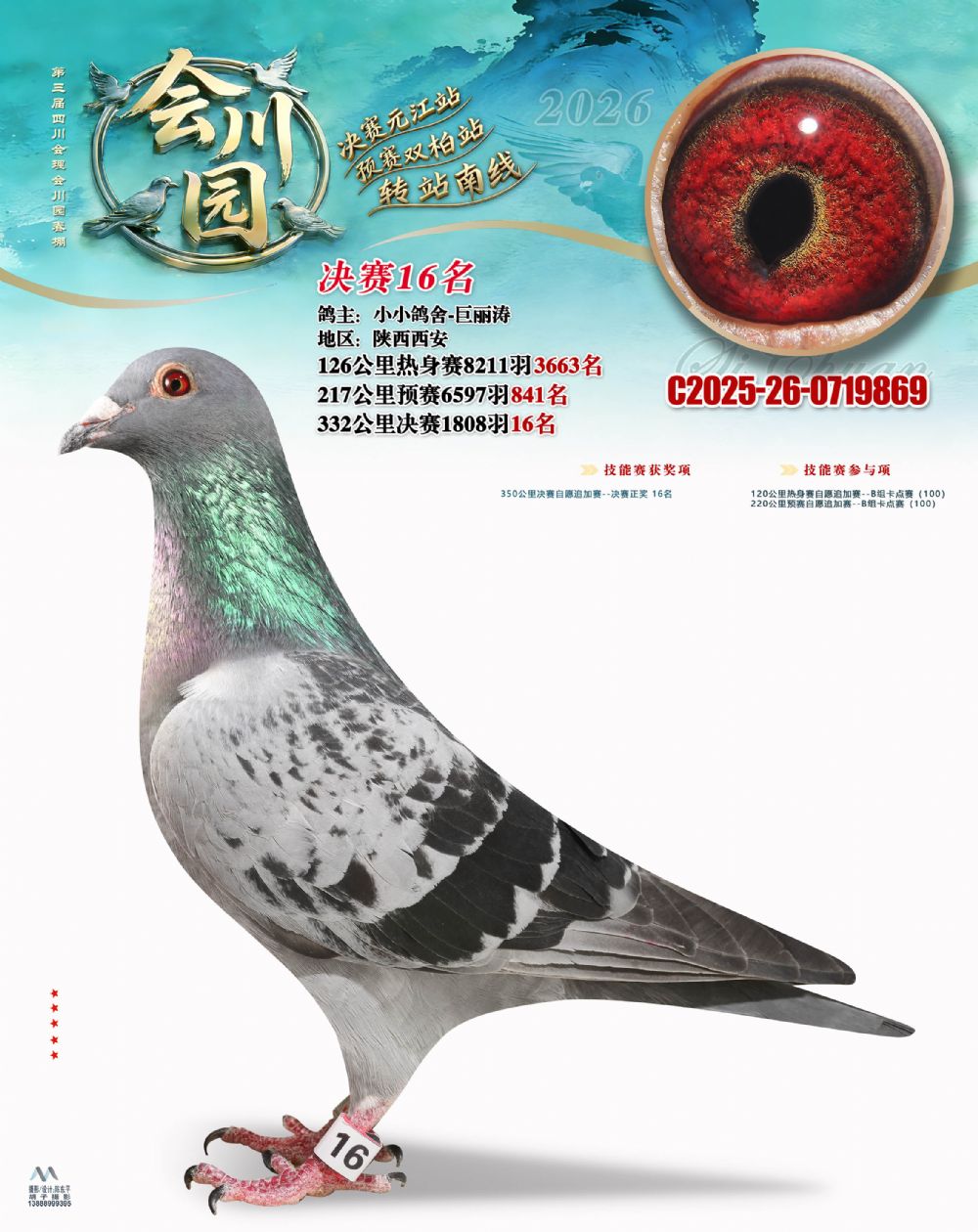 1657869 会川园决赛15名(鸽王季军) ¥30000元 9次