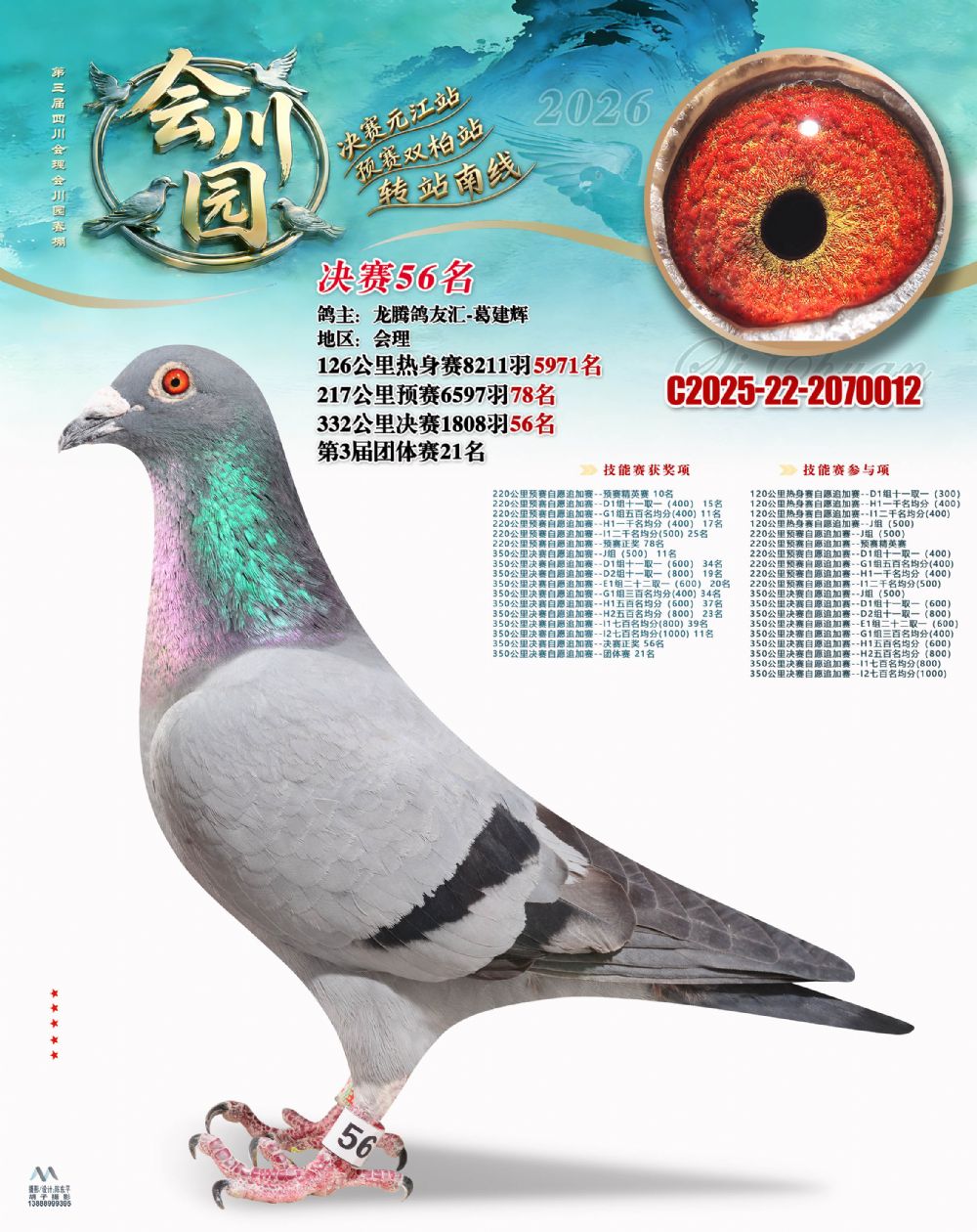 1657911 会川园决赛57名(鸽王冠军) ¥30000元 9次
