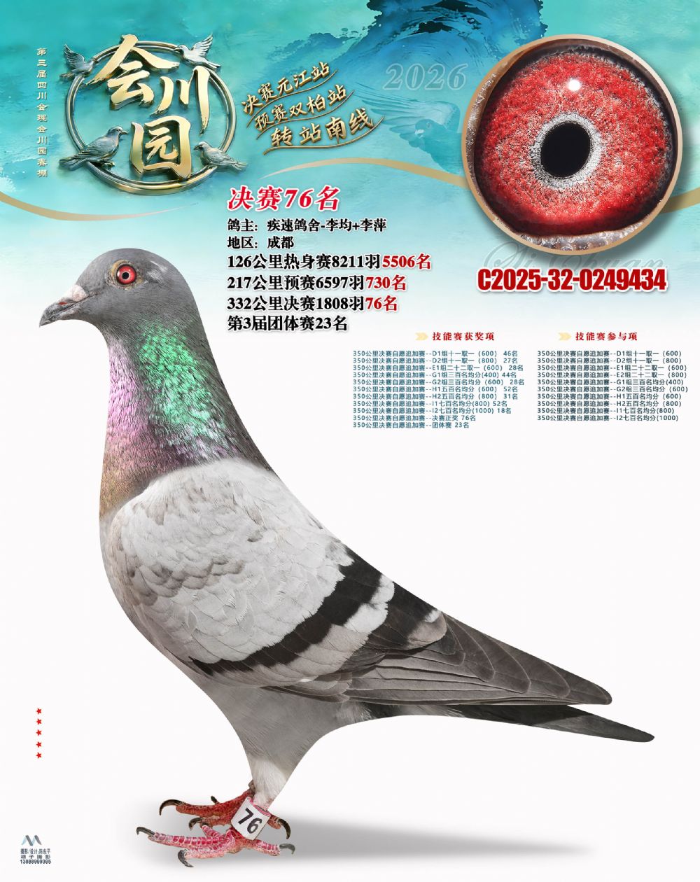 1657935 会川园决赛81名(鸽王9名) ¥5000元 5次