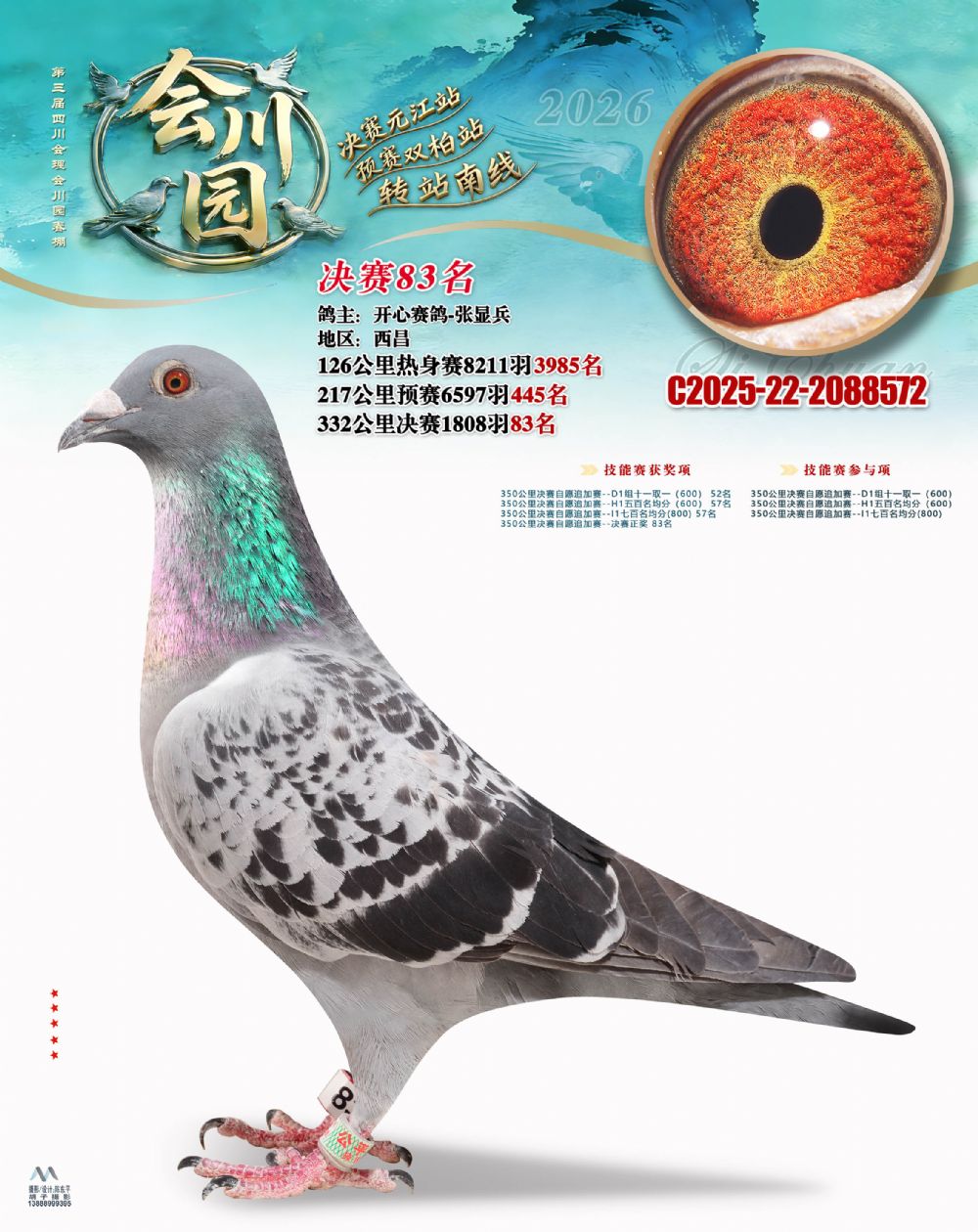 • 鸽主姓名:开心赛鸽-张显兵