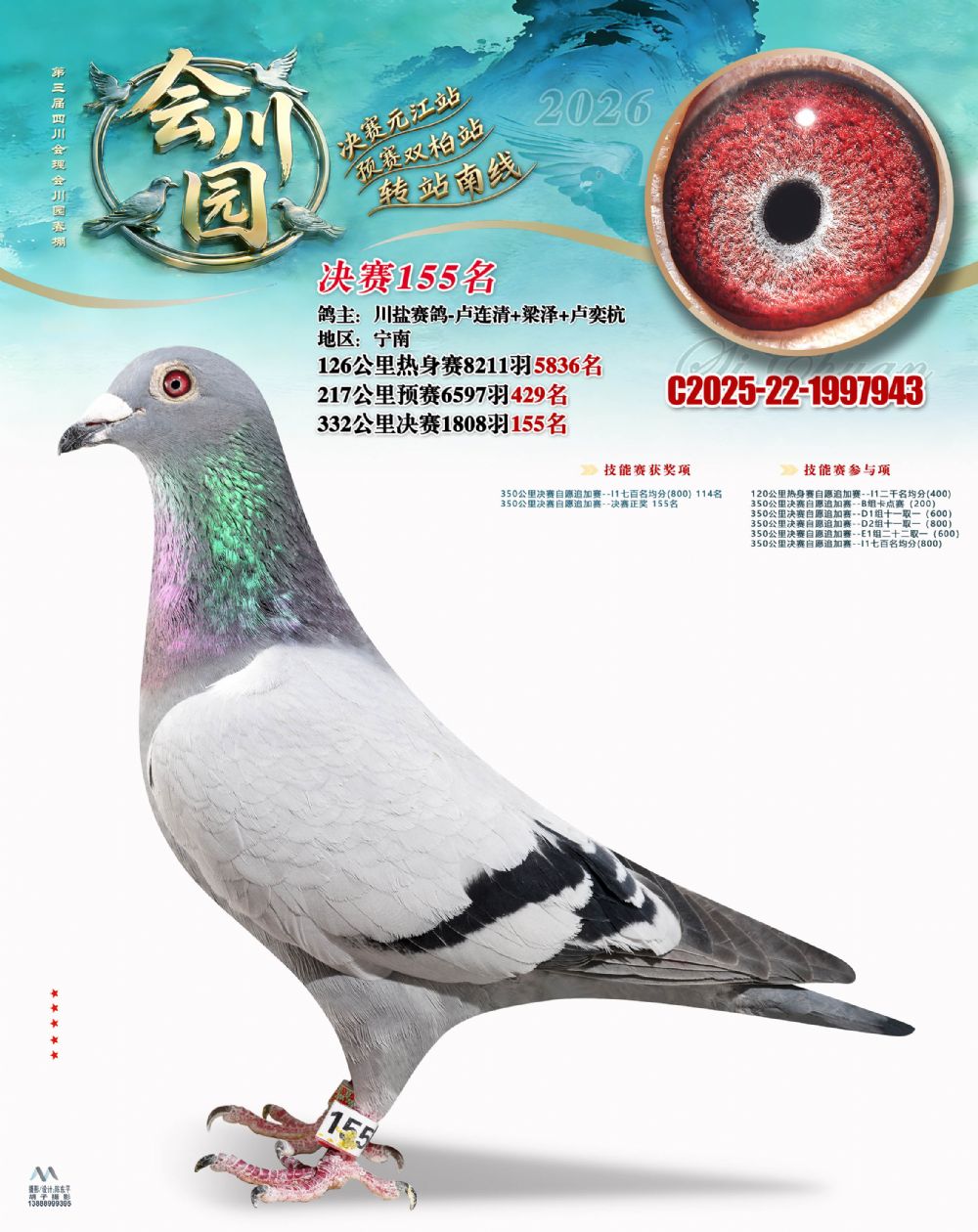 • 鸽主姓名:川盐赛鸽-卢连清+梁泽+卢奕杭