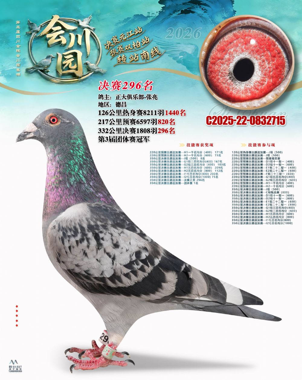 • 鸽主姓名:正大俱乐部-张亮